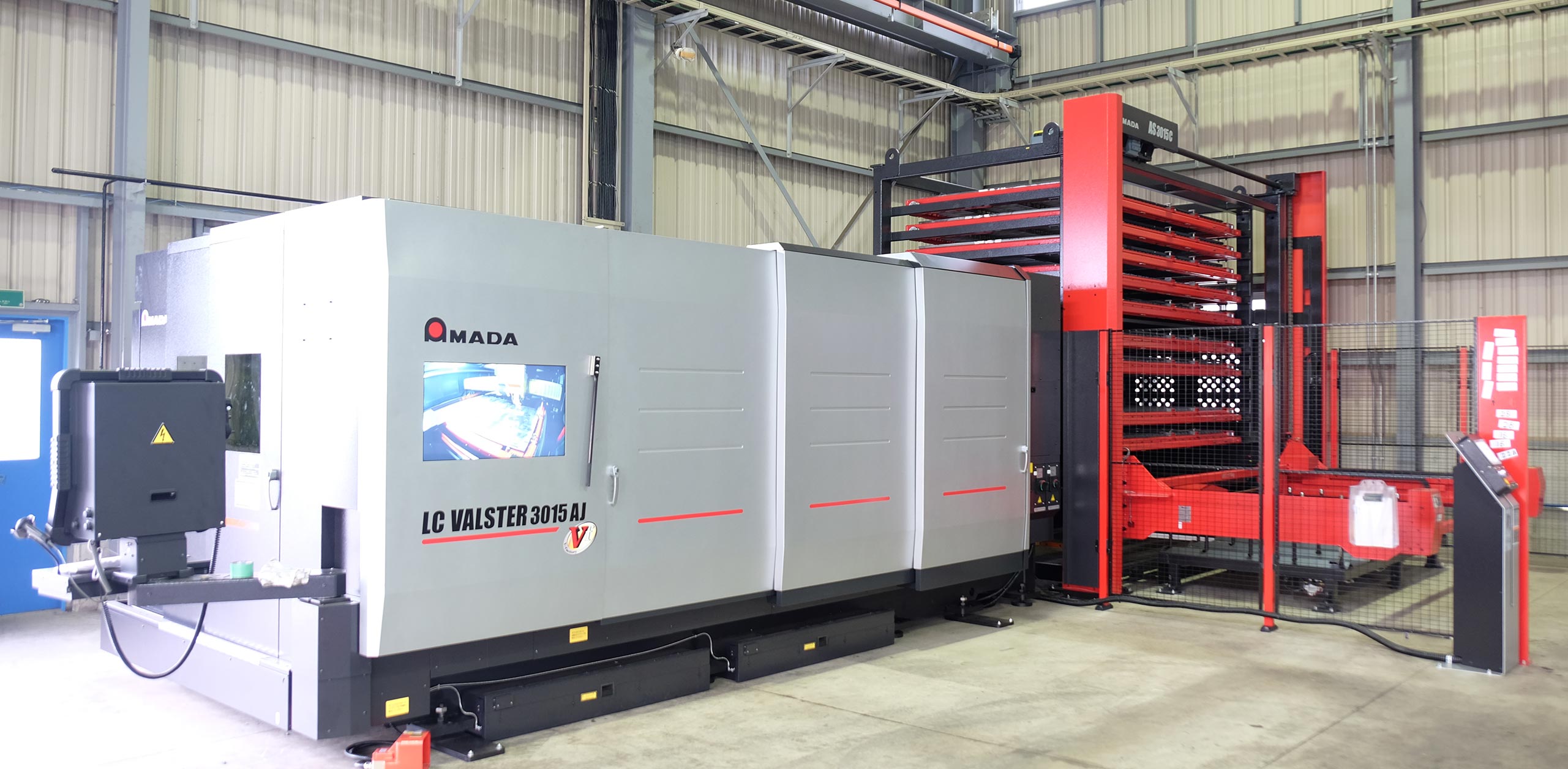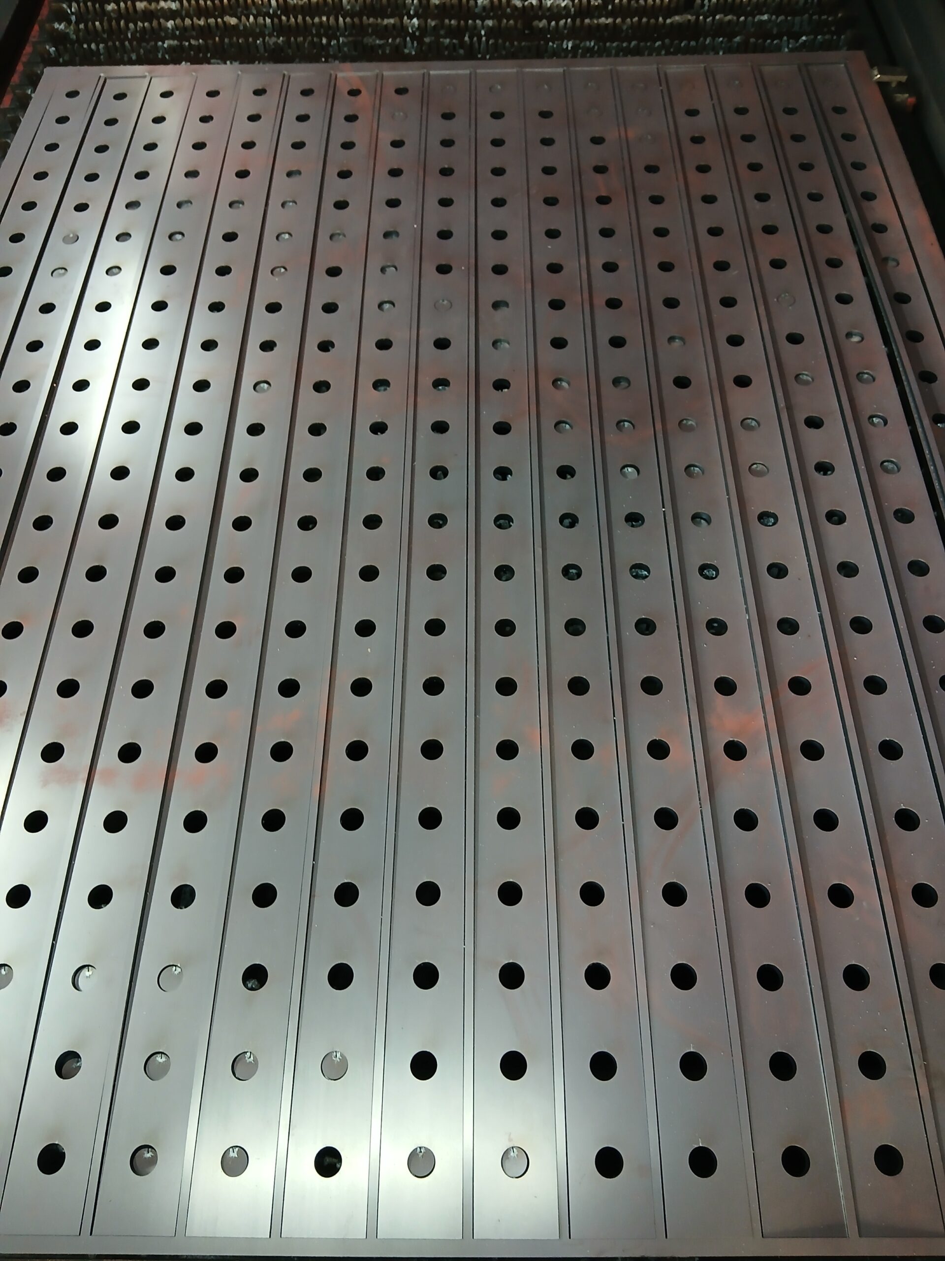 ガス溶断よりも精度が向上し小径穴にも対応可能 10段パレットチェンジャーでタイムロスを減らしました 最大加工サイズ 28 × 1,500 ×3,000
