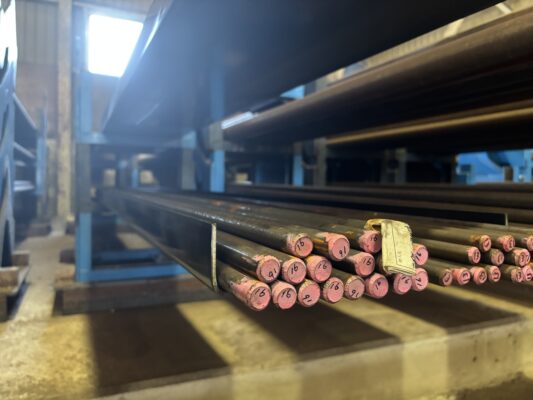 ここに鋼材を保管することで曲がりの少ない真っすぐな細丸を提供できます