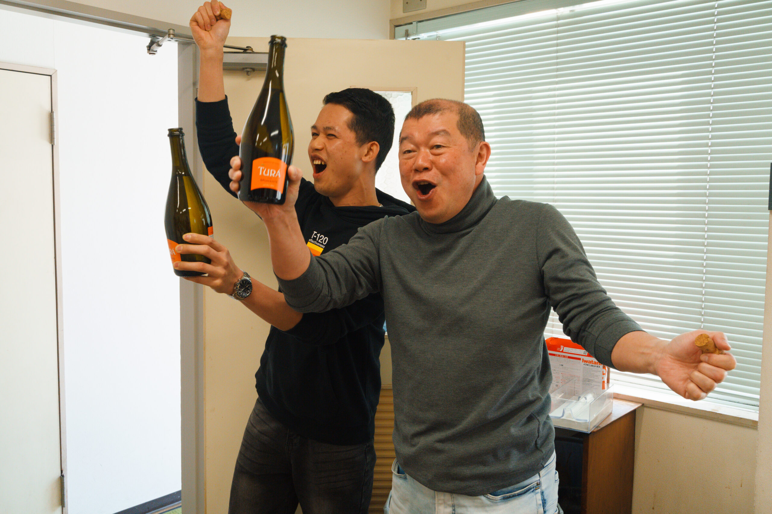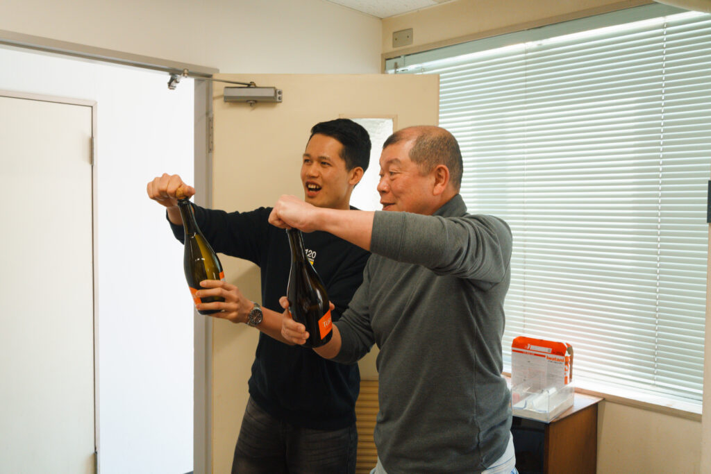 ミン君と社長でシャンパンを開けました!