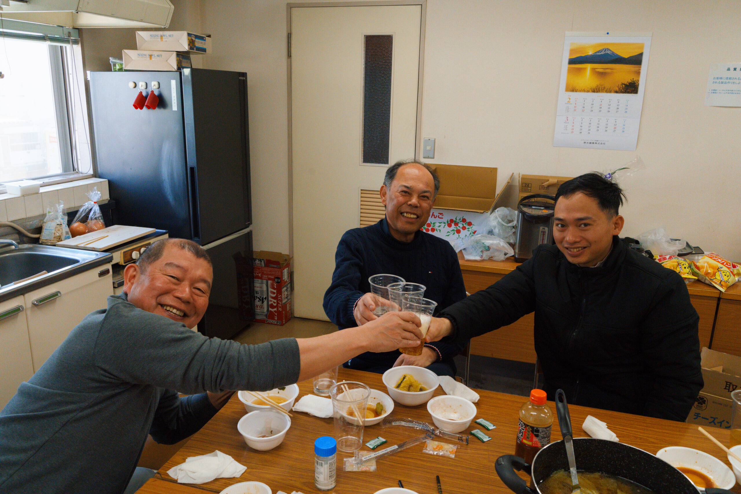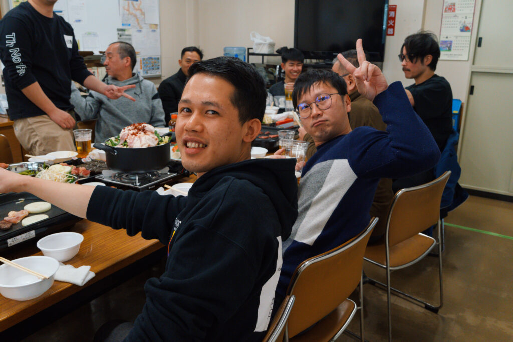 また、新しく入る実習生も参加してくれました。あまりお酒は飲めないそうで、最初は少し緊張した様子もあり、おとなしい印象でしたが、会が進むにつれて少しずつ表情もやわらぎ、最後には笑顔で「楽しかった」と話してくれました。 その言葉を聞いて、今回の歓送迎会はよいスタートの場になったのではないかと感じています。