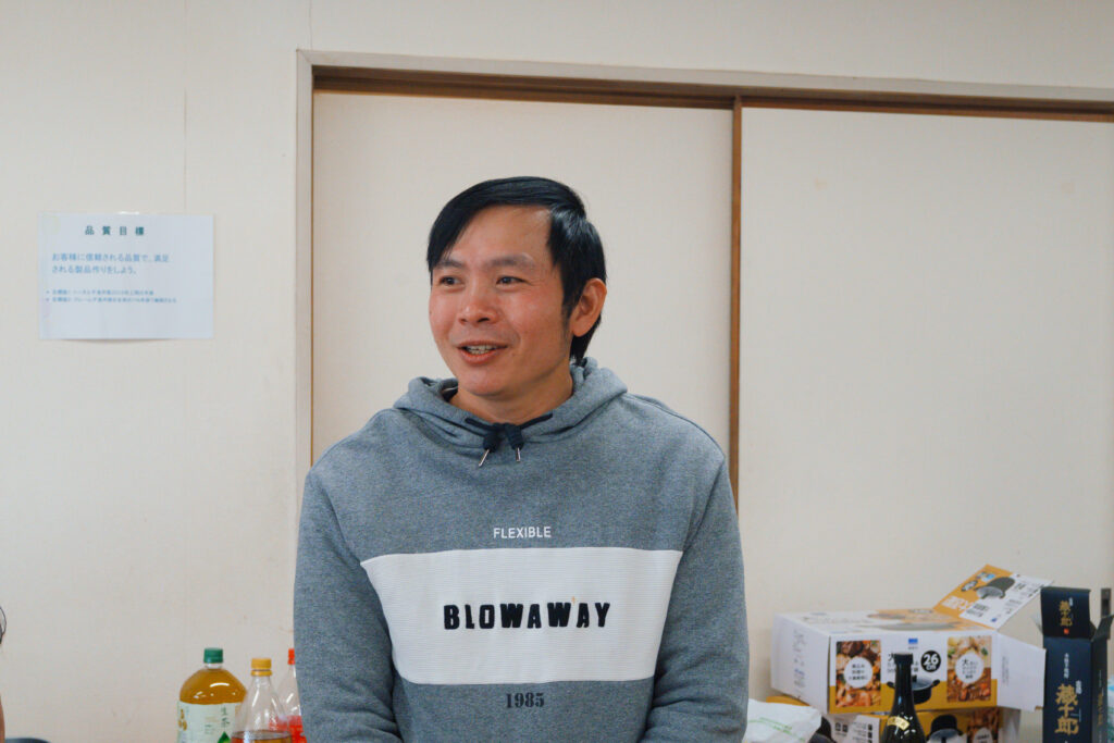 最後に退社するベトナム人スタッフから日本語で挨拶もありました。感謝の気持ちやこれまでの思い出が込められた言葉に、会場のみんなも真剣に耳を傾けていました。日本語で一生懸命に話してくれる姿から、これまでの時間の積み重ねや、職場の仲間とのつながりの深さが伝わってきて、とても心に残るひとときとなりました。